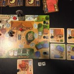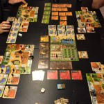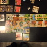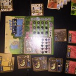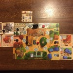 Au cours de la partie, les joueurs développent leur village en ajoutant des cartes sur les côtés de leur plateau. La principale “ressource” du jeu est le temps et la plupart des actions en consomment.