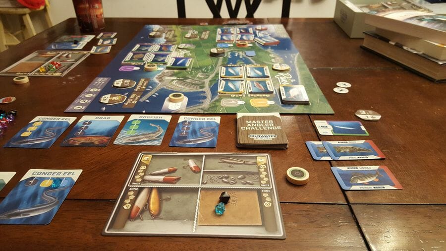 Coldwater Crown est un jeu de société amusant et astucieux qui capture le frisson de la pêche dans une expérience de table. Créé par le célèbre concepteur de jeux Brian Suhre, c'est un jeu de planification stratégique, d'intuition du pêcheur et de chance ! Testez vos compétences en matière de pêche contre trois de vos amis ou affinez vos talents dans l'étang d'entraînement. Il n'est pas nécessaire d'être un maître pêcheur pour gagner, mais une fois que le nombre de trophées s'accumule, vous pourriez bien en avoir l'impression !