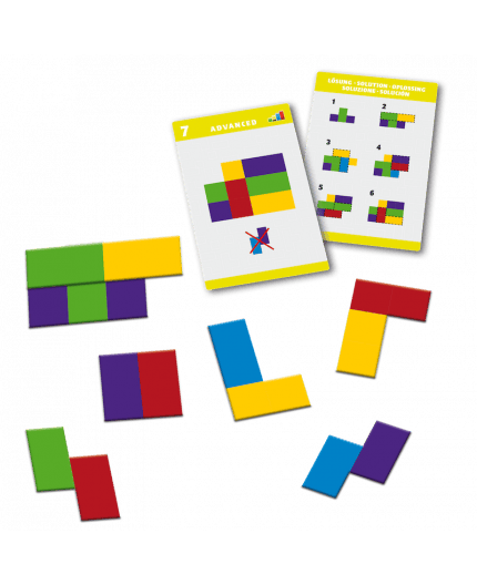 À partir des sept formes aux combinaisons de couleurs variées, le défi consiste à assembler 44 modèles de tapis sous forme de puzzle.
