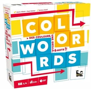 Color Words est un jeu de société de réflexion et de lettres jouable de 1 à 6 joueurs, dès 10 ans pour des parties d'environ 20 minutes, édité par Bankiiiz Editions.