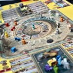 Les joueurs construisent également des "Temples de la Fortune" autour du plateau et gèrent des plateaux de joueurs améliorés pour marquer des points et organiser les actifs.