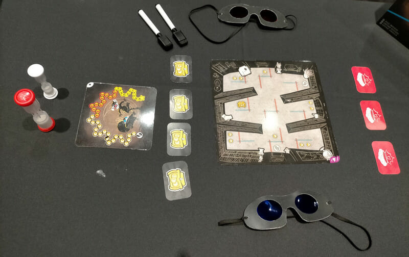 Le joueur avec les lunettes rouge doit alors tracer avec le feutre un chemin dans la salle afin de récupérer les pièces, tandis que le joueur avec les lunettes bleu est son guide. À eux de communiquer au mieux pour éviter les obstacles ! Chaque pièce récupérée rapporte 1 point, chaque laser touché fait perdre 1 point.