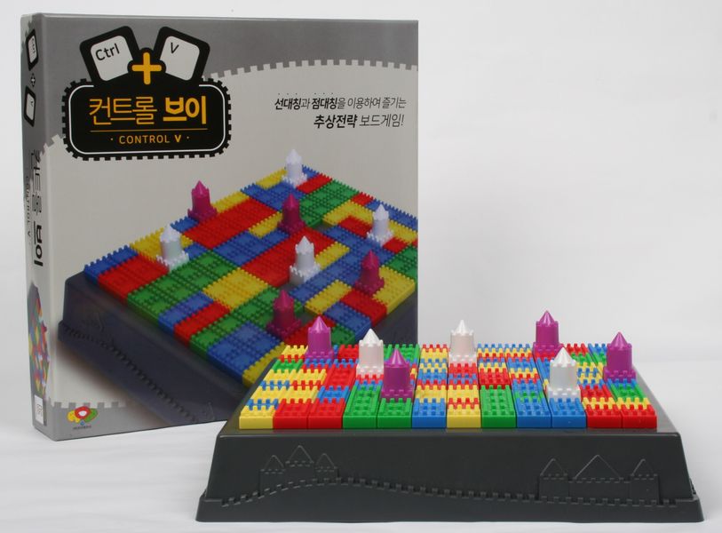 Control V est un jeu de stratégie abstrait utilisant la symétrie avec des blocs en forme de château. En utilisant la symétrie, copiez et collez vos blocs pour agrandir votre territoire, le joueur ayant le plus grand territoire sur le plateau gagne la partie.