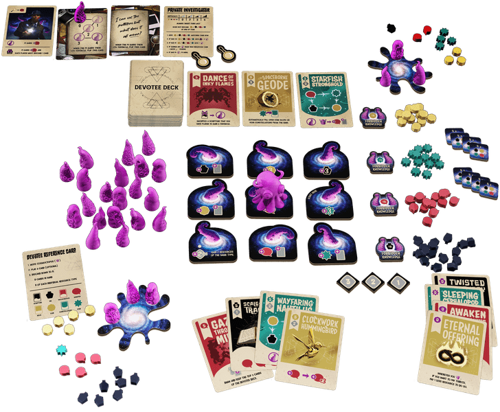 Le regard céleste du Grand Inky se pose sur vous ; avez-vous ce qu'il faut pour être le plus dévoué des fidèles ? Cosmoctopus est un jeu de plateau de construction de moteurs et de collecte de tentacules pour 1 à 4 fidèles.