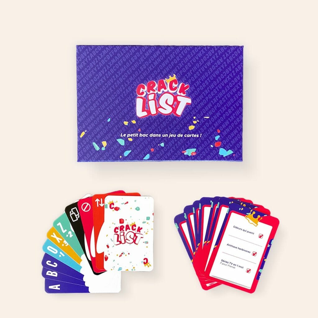 Finies les catégories du p'tit bac : Prénoms, Métiers, Pays ou Villes... CRACK LIST a repris le meilleur du petit bac pour créer le nouveau jeu de cartes d'ambiance en famille ou entre amis.