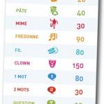 À chacune de ces possibilités correspond un certain nombre de points, selon le mot à faire deviner.