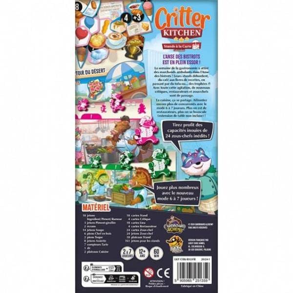 Critter Kitchen : Stands à la Carte est une extension jouable de 1 à 7 joueurs dès 10 ans pour des parties de 60 minutes, édité par Lucky Duck Games.