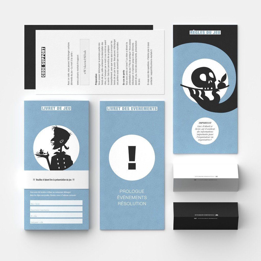 Culinario Mortale est une gamme de dîner enquête. Le temps d'un repas, les joueurs incarneront chacun un personnage. Un drame vient d'avoir lieu, les joueurs devront mener l'enquête pour trouver le coupable qui se trouve parmi eux. Le rythme est soutenue et l'intrigue est palpitante, pour une soirée pleine de rebondissements !