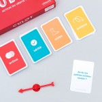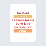 Pour une revisite complète du jeu Action ou Vérité, Culot comprend des cartes Posture et des cartes Corps. Pas question de rester posé dans son canapé : debout, à plat ventre, à genoux… Etre culotté, c’est du sport ! BOUGEZ AVEC CULOT ! Les combinaisons avec les Actions et les Vérités sont quasi-infinies pour des parties différentes à chaque soirée. Les gages et les questions sont à chaque fois réinterprétés, en fonction du joueur qui est désigné.