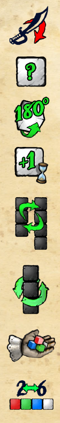 Qui plus est, si les pirates ne remplissent pas la mission, ils risquent aussi que la prochaine partie de la mission soit plus difficile à cause de la malédiction des dés noirs.