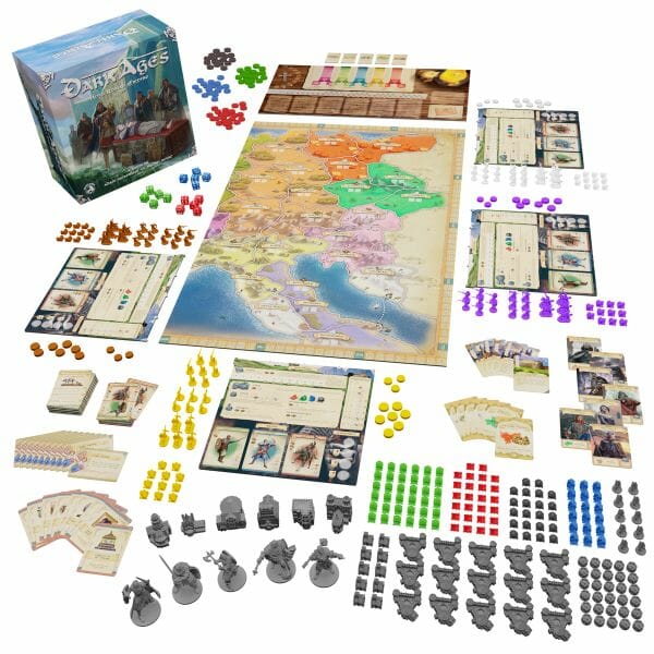Il existe une autre version de Dark Ages, Heritage of Charlemagne. Elle se concentre sur une autre partie de l'Europe. Cependant, vous pouvez combiner les deux version pour jouer à cinq joueurs ou plus ! Un mode solo conçu par David Turczi est également disponible.
