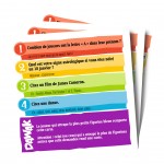 Chaque tour, le dé indique quelle question énoncer : cinéma, histoire, bande dessinée, vie quotidienne...aucun sujet n'est épargné ! Le plus rapide à répondre remporte la carte !