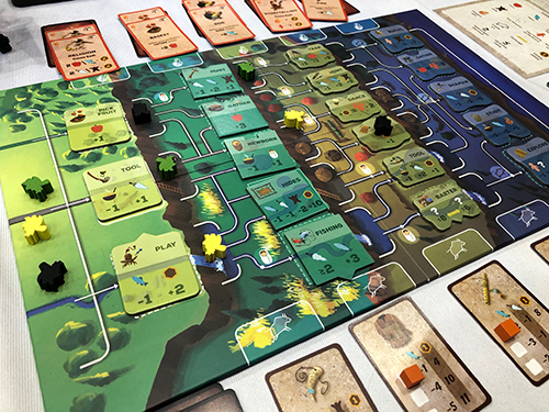 Dans Dawn of Mankind, les membres de votre clan se déplacent sur des chemins, rassemblent des ressources, ont des enfants, créent de l'art, découvrent de nouvelles méthodes de faire les choses... et puis vieillissent et meurent. Pendant que votre clan traverse ces épreuves, vous devez faire attention au moment où votre nourriture va se gâter et où d'autres personnes pourraient vouloir aller sur le plateau parce que s'ils choisissent le même chemin que vous avez déjà parcouru, ils pourraient vous aider par inadvertance sur votre chemin.