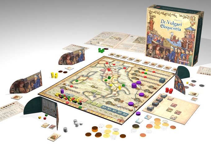 "De Vulgari Eloquentia est un jeu riche, passionnant et aux possibilités multiples. Dans cette quête pour la connaissance, parviendrez-vous à réunir les manuscrits des différents dialectes italiens ? Percerez-vous les secrets de la bibliothèque du Vatican ? Deviendrez-vous un riche et puissant marchand ? Ou entrerez-vous dans les Ordres et gravirez la hiérarchie de l’Eglise, jusqu’à, pourquoi pas, devenir le prochain Pape ?