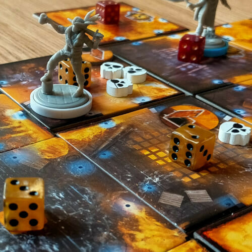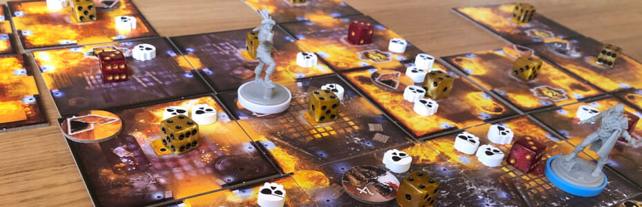Mécanismes : Cartes personnages, Coopératif, Dés, Plateau modulable, Points d'action