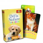 La règle du jeu des Défis Nature est adaptée aux enfants dès 4 ans, avec seulement 2 caractéristiques et aucun texte. Les enfants parient sur le poids ou le nombre de bébés animaux, et le premier à collecter toutes les cartes du jeu gagne la partie.
