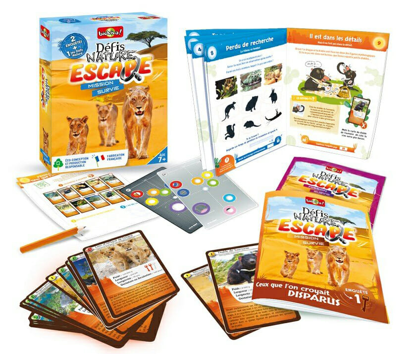 Deux enquêtes à résoudre grâce aux cartes Défis Nature incluses. Pour y arriver, vous devrez étudier les cartes dans leurs moindres détails pour y trouver des indices, des similitudes, des infos étonnantes et vous en servir pour résoudre les énigmes !