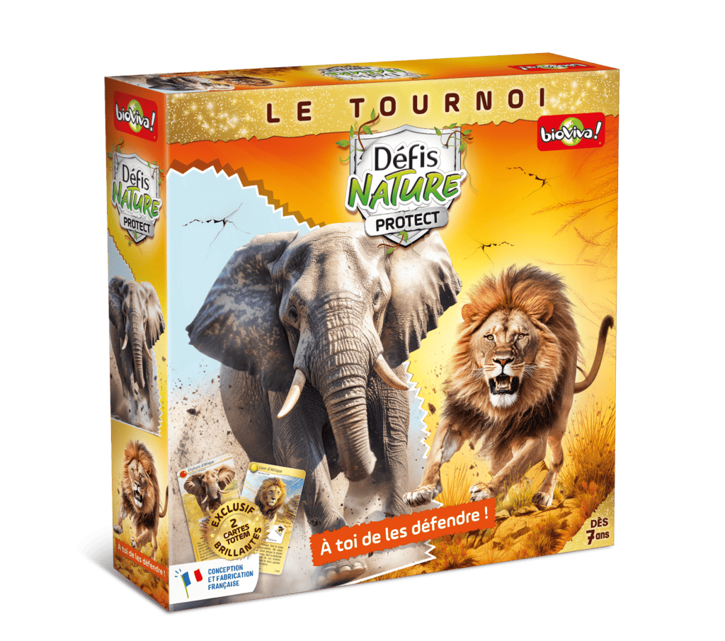 Défis Nature Protect, c’est plus de 300 cartes à collectionner pour jouer, s’émerveiller et défendre les espèces menacées. C’est le premier jeu de cartes à collectionner fabriqué en France qui sensibilise les enfants aux menaces pesant sur certains animaux et soutient la protection sur le terrain.
