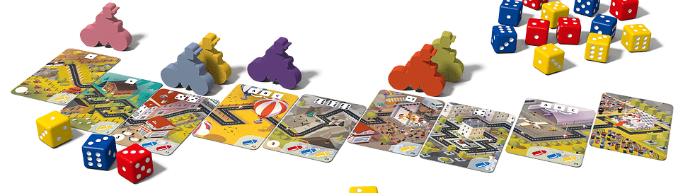 En début de partie, choisissez quelques cartes et disposez les pour créer votre parcours. Chaque joueur choisit un pion et c'est parti pour la course !