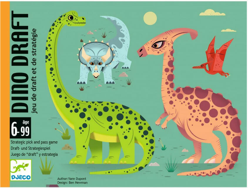 Tricératops, Brachiosaures, Stégosaures et Ptérodactyles sont de sorties. Dans Dino Draft, les cartes circulent de main en main et à chaque tour on ne peut en garder qu’une. Un jeu de stratégie permettant aux enfants d'apprendre la mécanique du "draft".