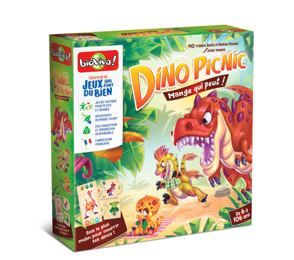 Herbivores ou carnivores, les dinosaures devaient lutter pour se nourrir et se reproduire ! Dans ce jeu de prise de tuiles, les joueurs de 6 à 106 ans recréent les chaînes alimentaires qui existaient il y a 100 millions d'années pour donner naissance à plein de bébés dinos.