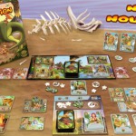 - 122 cartes, 40 différentes. Tableaux à 2 joueurs, 1 plateau principal, 12 pions de bois, 6 jetons Nourriture, 12 jetons Dino, 24 jetons Oeuf de dinosaure et 1 livret de règles.