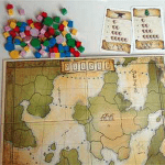 frontières blanches. Placez le jeton Région de Départ sur une région en respectant les critères suivants : la région choisie doit se trouver sur le plateau central, et doit avoir une liaison maritime avec une île située sur un autre plateau de jeu.Chaque joueur prend une série de 18 Armées (cubes) et de 3 Cités (tours) de la couleur de son choix.