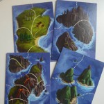 Les plateaux de jeu représentent une ou plusieurs îles connectées par des lignes en pointillés, et sur chaque île se trouvent une ou plusieurs régions délimitées par des