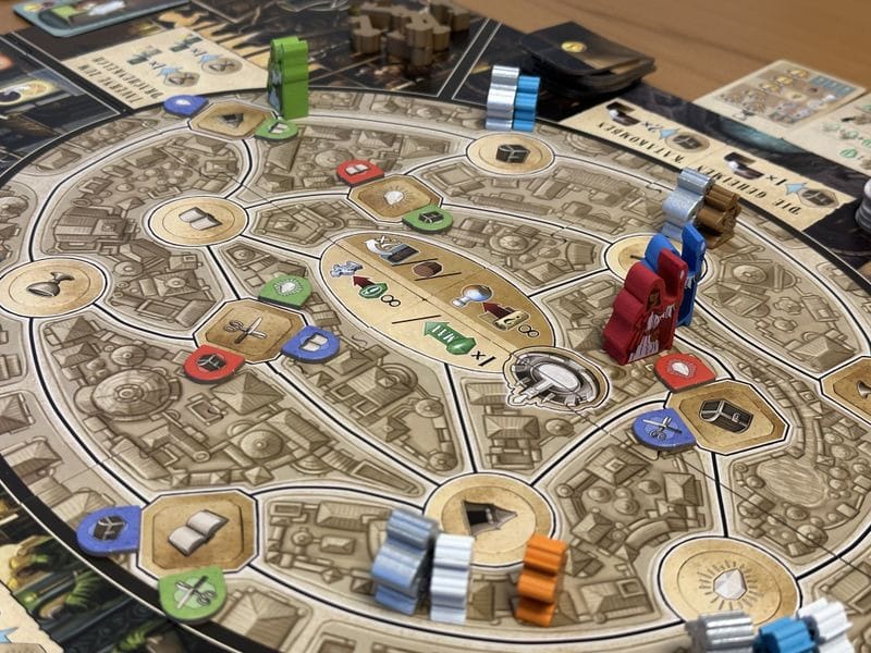 Dans Djinn, vous vous déplacez à tour de rôle sur une carte où figurent treize lieux. Ces lieux sont liés à des actions qui vous permettent d'obtenir les ressources dont vous avez besoin et d'attraper les Djinns qui se trouvent dans six lieux. Dans ces lieux, vous pouvez faire des choses comme recevoir des bouteilles et des bouchons, collecter des pouvoirs magiques, acheter des objets magiques, engager des mages pour vous accompagner, découvrir des passages secrets, et bien plus encore.