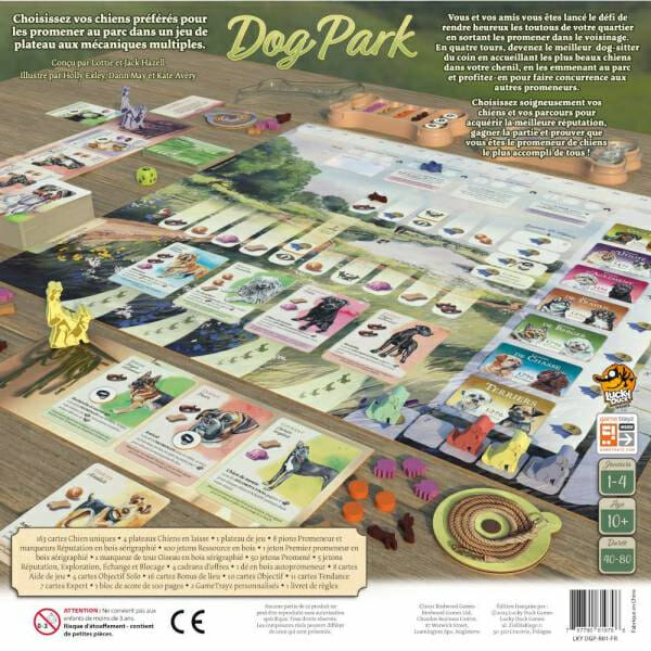 Dog Park est un jeu de collection, édité par Lucky Duck Games, pour 1 à 4 joueurs dès 10 ans, dans lequel vous êtes des dog-sitters et devez promener vos chiens pour les rendre le plus heureux possible au cours d'une partie d'environ 60 minutes.