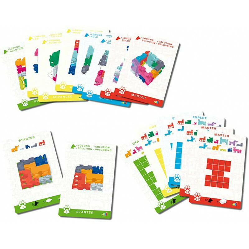 12 adorables figurines à manipuler, à tourner dans tous les sens et éventuellement à empiler sur plusieurs niveaux pou rrésoudre 44 défis de difficulté croissante.