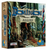 Dominion : Alliés, la 14e extension de la série Dominion, contient 400 cartes, avec 31 nouvelles piles de cartes Royaume qui contiennent des alliés qui vous feront des faveurs et des piles divisées que vous pouvez faire tourner.