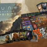 Dune : Imperium Uprising est un spin-off autonome de Dune : Imperium qui développe le mélange de construction de paquets et de placement d'ouvriers de ce jeu, tout en introduisant un nouveau mode six joueurs qui oppose deux équipes l'une à l'autre dans la plus grande des luttes.