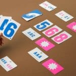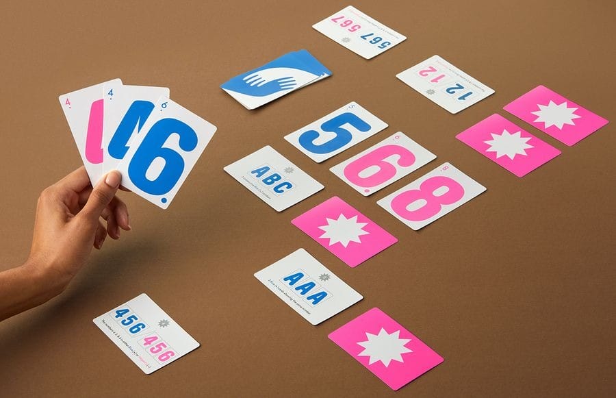 Les cartes sont numérotées de 1 à 8 en magenta et en bleu, et chaque carte est éditée en plusieurs exemplaires. Chaque joueur a un objectif personnel, face visible, et un objectif public est disponible pour tous les joueurs, avec des objectifs comme avoir quatre cartes bleues dans l'ordre, avoir trois cartes du même nombre pair, ou avoir deux cartes magenta qui s'ajoutent à une troisième carte magenta.