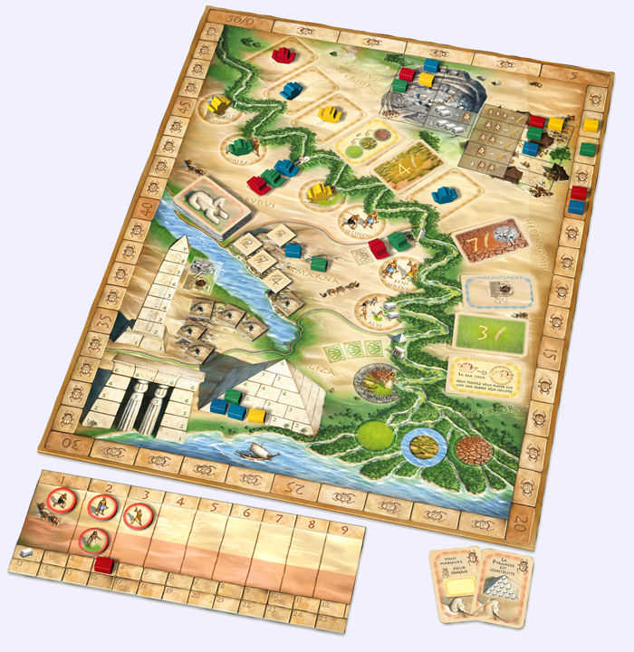 Egizia est un jeu de Virginio Gigli, Antonio Tinto, Flaminia Brasini et Stefano Luperto, un groupe d’auteurs italiens surnommé Acchittocca dont Egizia fut le dernier jeu. Il fut