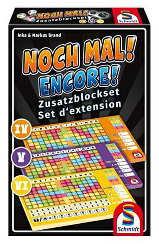 Ensemble de trois nouveaux livrets (IV, V, VI) avec de nouvelles feuilles pour le jeu de dés Encore. Les nouveaux agencements de couleurs offrent une nouvelle expérience de jeu.