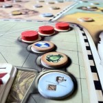 1) Affréter : Prendre un marqueur de population dans son port et le placer sur une piste d’expédition et prendre le jeton commerce qui se trouve sur cet emplacement. Si le marqueur occupe la dernière position, le joueur ayant le plus de marqueurs sur la piste reçoit la carte de gouverneur correspondante et la région devient ouverte.