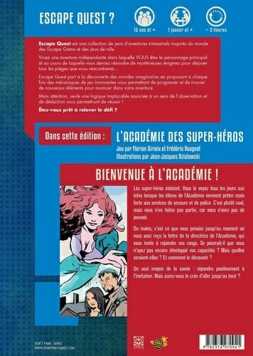 Bienvenue dans l'Académie ! Les super-héros existent. Vous le voyez tous les jours aux infos lorsque les élèves de l'Académie viennent prêter main forte aux services de secours et de police. C'est plutôt cool, mais vous n'en faites pas partie, car vous n'avez pas de pouvoir. Du moins, c'est ce que vous pensiez jusqu'au moment où vous avez reçu la lettre de la directrice de l'Académie, qui vous invite à rejoindre ses rangs.