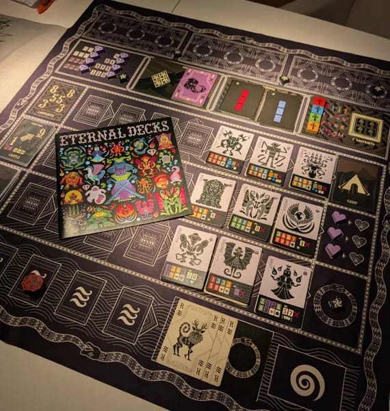 Eternal Decks est un jeu entièrement coopératif dans lequel les joueurs tentent de remplir les objectifs de l'étape avant qu'un joueur ne puisse entreprendre une action. Les joueurs commencent le jeu avec 5 cartes dans leur deck, mais ils chercheront rapidement à en acquérir d'autres auprès des différents Eternels (personnages du jeu) qui ont chacun leur propre deck de 8 cartes.