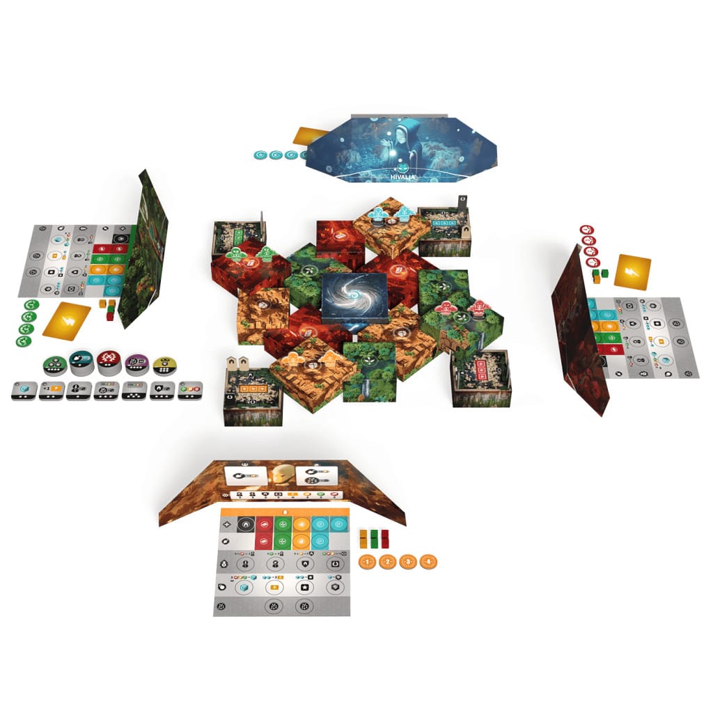 Le plateau de jeu est en 3D, composé de boîte en carton s’imbriquant et se chevauchant, il est toutefois aisé à installer et à ranger.