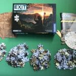 Mais cette fois, c'est différent, car il y a des énigmes dans les énigmes, cachées dans les puzzles. Comme d'autres EXITs avant lui, ce jeu n'a pas de plateau de jeu ! Mais il n'a pas non plus de cartes ; à la place, dans cette nouvelle addition à la série EXIT, il y a quatre puzzles, que vous trouverez pendant le jeu et que vous assemblerez une section à la fois, un puzzle après l'autre. Chaque puzzle crée une image qui vous montre ce que vous devez trouver dans le jeu et à quoi ressemble chaque pièce.