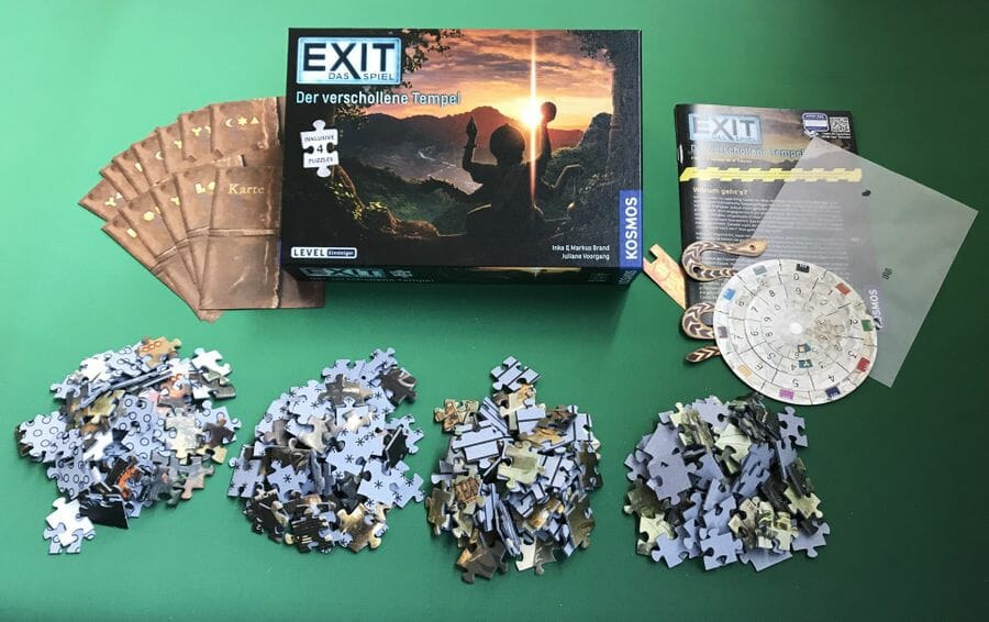 Mais cette fois, c'est différent, car il y a des énigmes dans les énigmes, cachées dans les puzzles. Comme d'autres EXITs avant lui, ce jeu n'a pas de plateau de jeu ! Mais il n'a pas non plus de cartes ; à la place, dans cette nouvelle addition à la série EXIT, il y a quatre puzzles, que vous trouverez pendant le jeu et que vous assemblerez une section à la fois, un puzzle après l'autre. Chaque puzzle crée une image qui vous montre ce que vous devez trouver dans le jeu et à quoi ressemble chaque pièce.