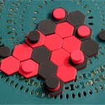 - 8 pions noirs, 8 pions rouges et 39 hexagones double face.