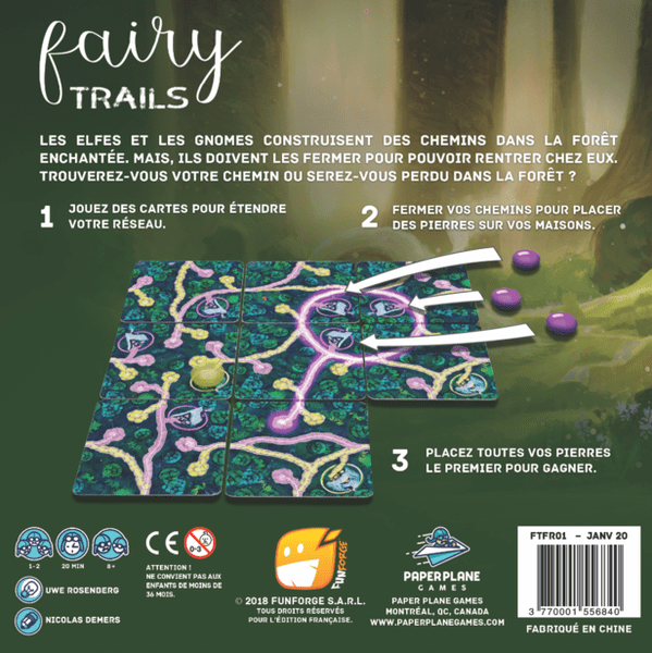 Dans Fairy Trails, les joueurs jouent des cartes qui élargissent le réseau. Une fois la route terminée, le joueur peut placer une pierre sur chacune de ses maisons qui bordent cette route. Le joueur qui place toutes ses maisons en premier gagne.