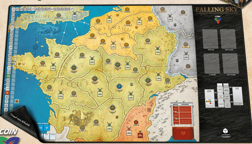 Falling Sky vous propose de revivre ce passage marquant de l'Histoire de France, et pourquoi pas, d'en changer l'issue, en prenant le contrôle de l'une des 4 factions disponibles dans le jeu : les Romains avec à leur tête Jules César, les Belges avec Ambiorix, les Arvennes avec le célèbre Vercingétorix et les Éduens. Une cinquième faction, les Germains, peut franchir le Rhin et venir semer le chaos. L’extension Ariovistus est le prologue de Falling Sky, le début de la conquête romaine de la Gaule, et permet de jouer cette faction germanique.