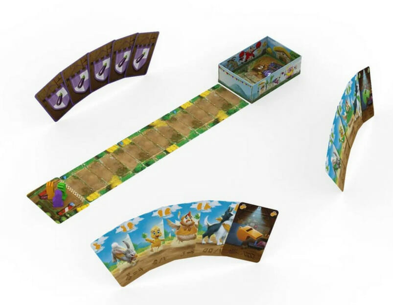 Chaque joueur va chercher à faire avancer son pion relais sur la piste de course à l'aide de sa main de cartes. Cette dernière est composée d'un Caneton, d'une Poule, d'un Lapin, d'un Chien, un Sifflet et un Coq. Chaque carte a des effets différents qui vont également dépendre des autres cartes jouées. Un peu de bluff, un peu de chance, un peu de chaos vous permettrons d'avancer votre relais jusqu'à la ligne d'arrivée.