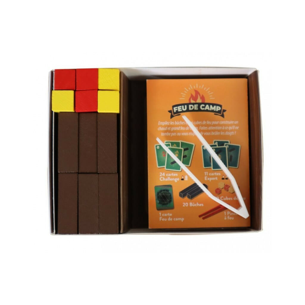 Vous participez à un concours du plus beau feu de camps et il vous faudra jouer avec le feu. Plus vous prendrez de risques pour l'embellir plus vous risquerez de le perdre ! Aurez vous les nerfs assez solides ? Piochez une carte et respecter les éléments et les contraintes demandés. Utilisez la pince pour saisir les éléments Allumez le feu mais ne vous brûlez pas !