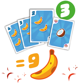 Des bananes mûres, des bananes vertes ou des des noix de coco : que peut-il bien y avoir sur les deux cartes que vous montrez à votre voisin ? Libre à vous de croire ses indications ! Mais arrangez-vous pour garder la meilleure des deux et lui refiler la moins bonne !