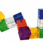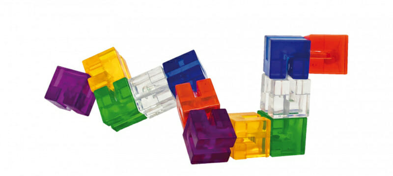 Une chaîne de 12 cubes colorés translucides qui peuvent être orientés et pliés dans toutes les directions à 45° ou 90°.