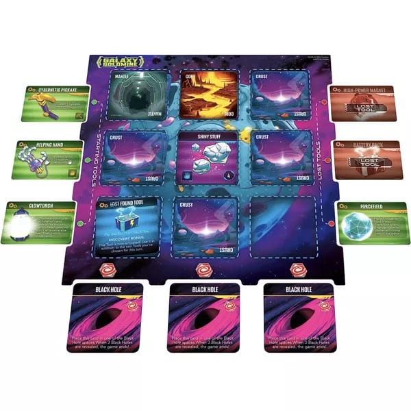 JEU DE CARTES DE CHASSE AUX TRÉSORS DE L'ESPACE : Exploitez l'astéroïde pour trouver des trésors de l'espace ! Dans le jeu Galaxy Goldmine, les joueurs font appel à un peu de stratégie, de mémoire et de chance pour collecter le plus d'objets cool et brillants possible